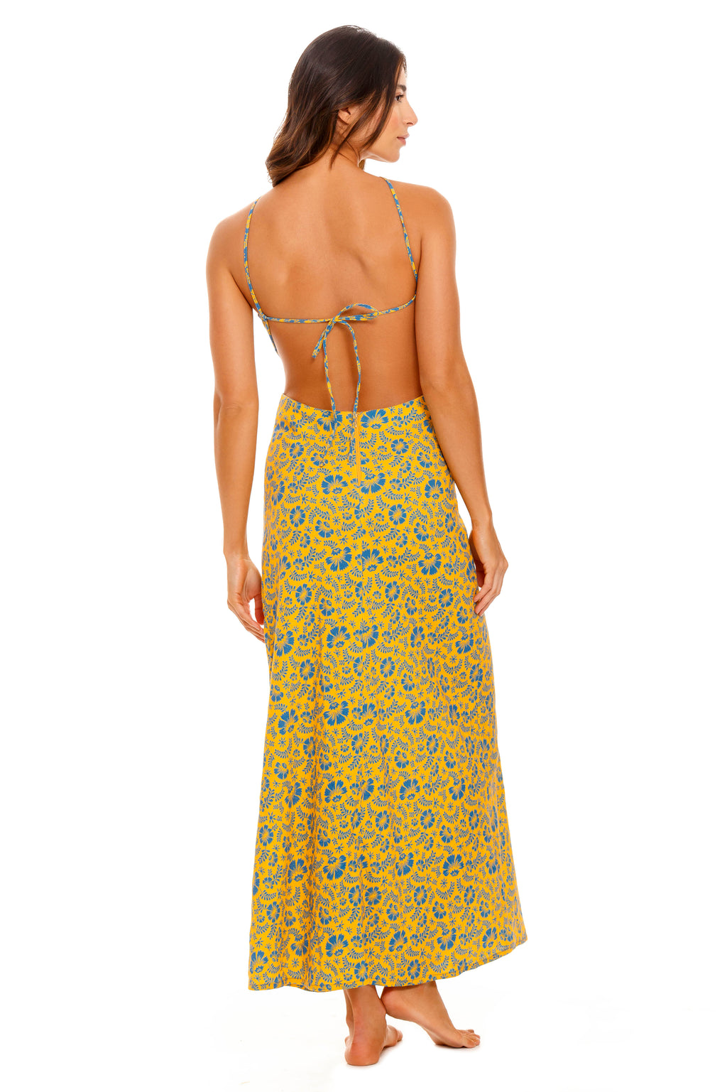 This Indira Tout Long Dress is the perfect addition to your wardrobe. A bold floral print in a maxi style creates a fun and fresh look, while cut-outs subtly show off your best features. An open back and wide scarf-like top give this dress a unique spirit. Make a statement wherever you go!